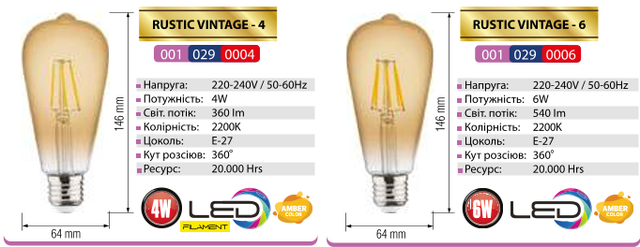 Тоді у ваші світильники з патроном Е27 чудово підійде світлодіодна лампа Filament Rustic Vintage-6. Завдяки своїй економності та компактній структурі вона є однією з найпопулярніших серед світлодіодних філаментних ламп.